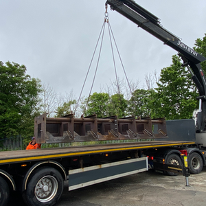 This project was interesting, we were tasked with the design and fabrication of an A frame style crane that would be used to lift a dredging plough into the sea. It was fabricated from plate ranging in thickness including 25mm, 30mm and 50mm. All plates were hand cut in house. It is currently being used off the coast of Ireland.